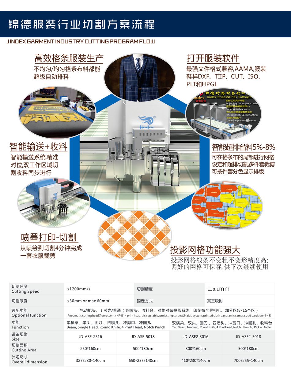 錦德智能單量裁床在操作上非常靈活多樣,可以針對(duì)各種材料,實(shí)現(xiàn)多道工序的復(fù)...
