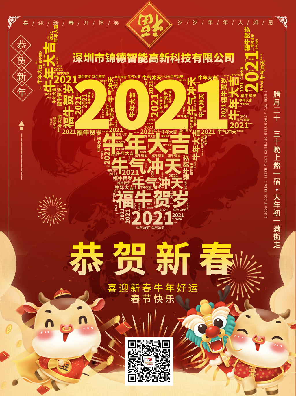 2020年是不平凡的一年,但錦德收獲滿滿,我們即將揮別鼠年迎來(lái)牛年,在此辭舊迎新,迎接嶄新的2021之際,我謹(jǐn)代表錦德全體同仁向始終信賴、支持錦德發(fā)展的廣大用戶,以及社會(huì)各界朋友表示衷心的感謝,恭祝大家闔家團(tuán)圓,財(cái)源廣進(jìn)!